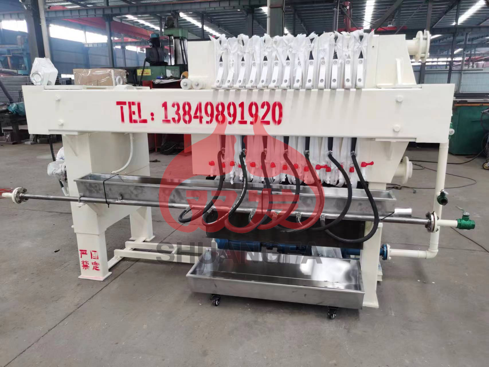 壓濾機(jī)的自動(dòng)接液翻版是安裝在濾板下方的一種集液裝置,當(dāng)壓濾機(jī)在進(jìn)料時(shí),濾板下方滲漏部分液體,流入翻板后(自動(dòng)集水盤)順流到壓濾機(jī)兩邊,通過(guò)集液槽匯入集中池。